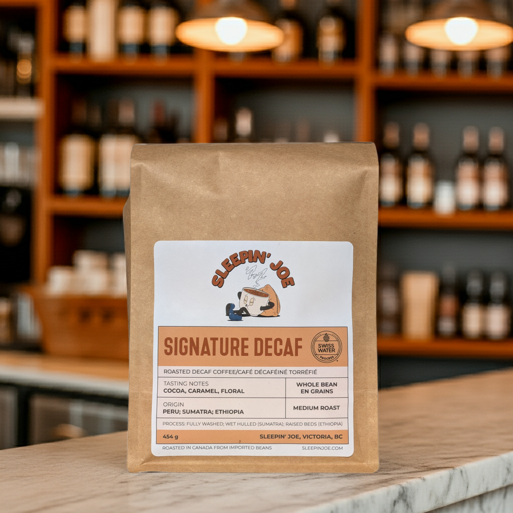 At Sleepin' Joe, we're on a mission to bring quality decaf to the market. We're just getting started with our Signature Blend, the most reliable and delicious decaf we could source locally.